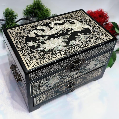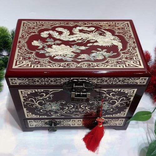 50% off Ancient Pingyao Lacquer Jewelry Box - 23 Size, Inlaid with Brass Wire & Seashell, 'Open the Door' Design, Hand-Polished Heirloom Treasure for Women, Gift for Her
